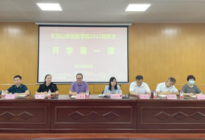 金秋九月,叠翠鎏金。2022年9月5日,平顶山学院医学院在多媒体报告厅采取线上直播方式举行2022级新生开学典礼暨开学第一课。医学院党委书记王冠波,院长郑新华,党委副书记冯建、白现广,副院长王福安、夏西超、冯延平同1000余名2022级新生相聚"云"端,线上迎新。