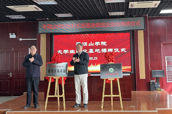 最后,在热烈的掌声中,李培与王海彦共同为“平顶山学院教育实践基地”和“平顶山学院大学生就业基地”揭牌。