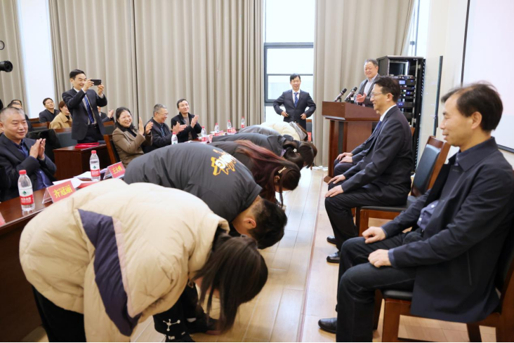 在全体与会人员的见证下,平顶山学院2022级临床医学专业60名本科生分别给导师行拜师礼,结下一生的师徒情谊。