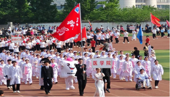 4月25日上午,平顶山学院2024年春季田径运动会暨教工趣味运动会开幕式在湖滨校区田径运动场举行。我院领导、全体教职工以及80名方阵表演学生参加开幕式。伴随着《运动员进行曲》,我院入场方阵身着白衣,以整齐的着装、嘹亮的口号、富有医护专业特色的队列充分展现了医学院学子的青春活力和精神风貌。