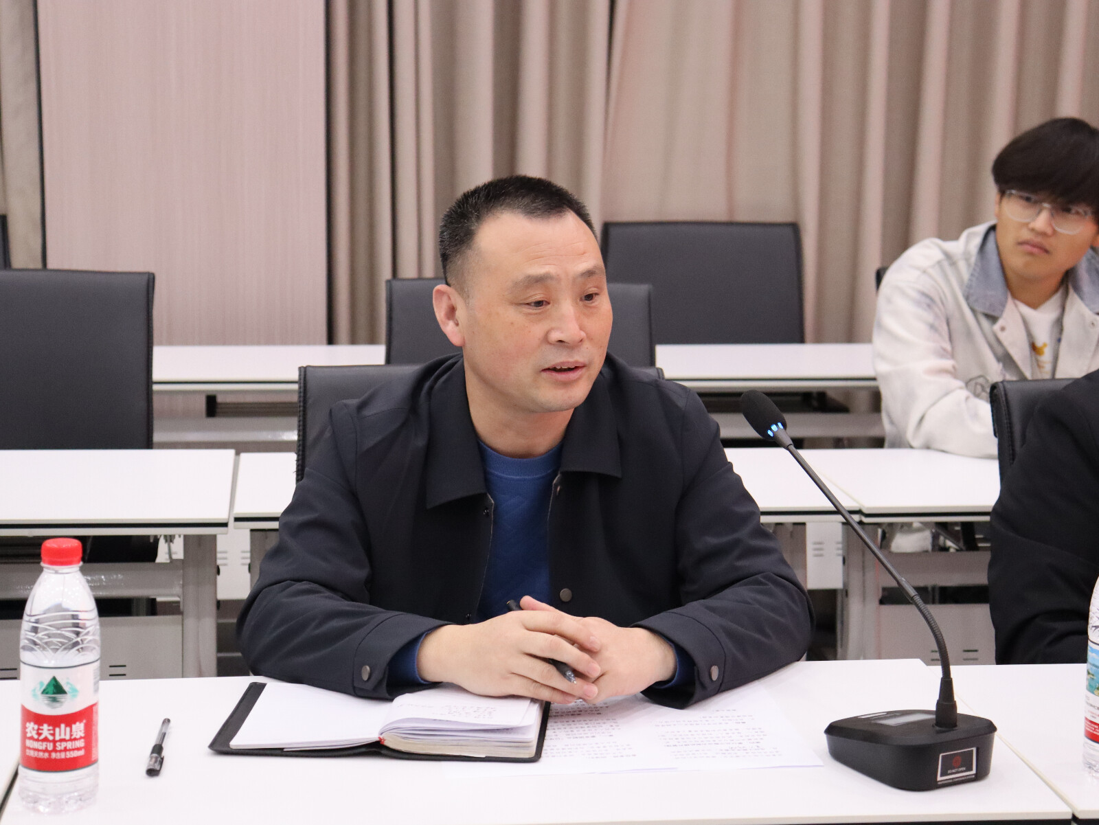 会上,学生代表将前期收集的意见和建议逐一反馈,包含教育教学、学习生活、后勤保障等多个方面,相关领导就大家关注的问题认真记录、及时反馈、积极协调。崇文校区管委会樊爱豫、马海军就学生提出的校园安全、后勤服务保障、公共区域维修等方面的问题进行了详细解答,并欢迎同学们多提宝贵意见,共建安全文明校园