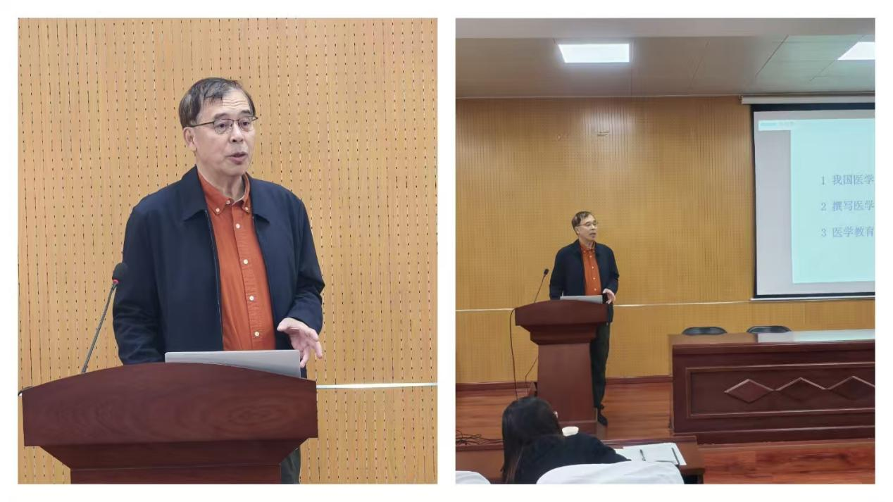 本次讲座特邀医学教育研究领域两位资深专家担任主讲嘉宾。中国高等教育学会医学教育专业委员会副理事长、中华医学会医学教育分会原副主任委员兼秘书长、医学教育期刊学组组长、《中华医学教育杂志》顾问、《浙江医学教育》编辑部主任、北京大学医学教育研究所顾问郭立研究员,结合自身丰富的审稿经验与行业深耕经历,从医学教育论文的基本要求、写作规范、发展趋势等方面展开深入解读,针对研究设计、方法选择、成果发表等关键环节为教师们提供了具体可行的实践建议。