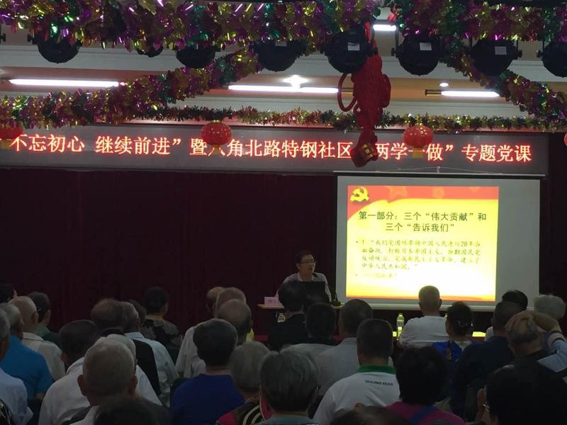 7月11日上午,《“不忘初心,继续前进”——学习习近平总书记在庆祝建党95周年大会上的讲话》专题党课在石景山区八角北路特钢社区会场举行,由学院派出的周守高博士宣讲。周博士从中国共产党成立前马克思主义理论在中国的传播确定了先进分子的“初心”讲起,比较了参加中国共产党“一大”的13位代表个人对于“初心”的不同坚守而导致的不同人生结局,确证中国共产党取得的成就是千千万万党员“不忘初心,继续前进”的结果,进而引出当前面对新的国内国际形势,要继续前进,必须深入理解、牢牢把握习近平总书记“七一”重要讲话等系列讲话精神。周博士以生动活泼的语言对习近平总书记“七一”重要讲话中的八个“不忘初心,继续前进”做了重点解读。前后一个半小时的宣讲结束后,平均年龄70岁、参加听课的80多名老党员普遍感到讲解详尽、系统、接地气,受到一次很好的教育。