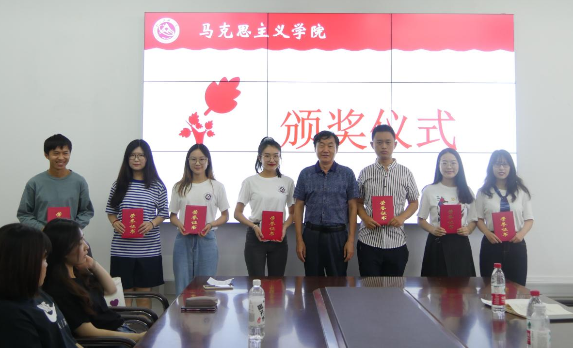 会上,周守高老师和张伟伟老师分别宣读了《公海官方网710jcjc2021年春季马列经典读书会表彰决定》、《北方工业大学马克思主义学2020-2021学年度第二学期表彰决定书》,对表现优异的24名同学分别给与了表彰颁奖。