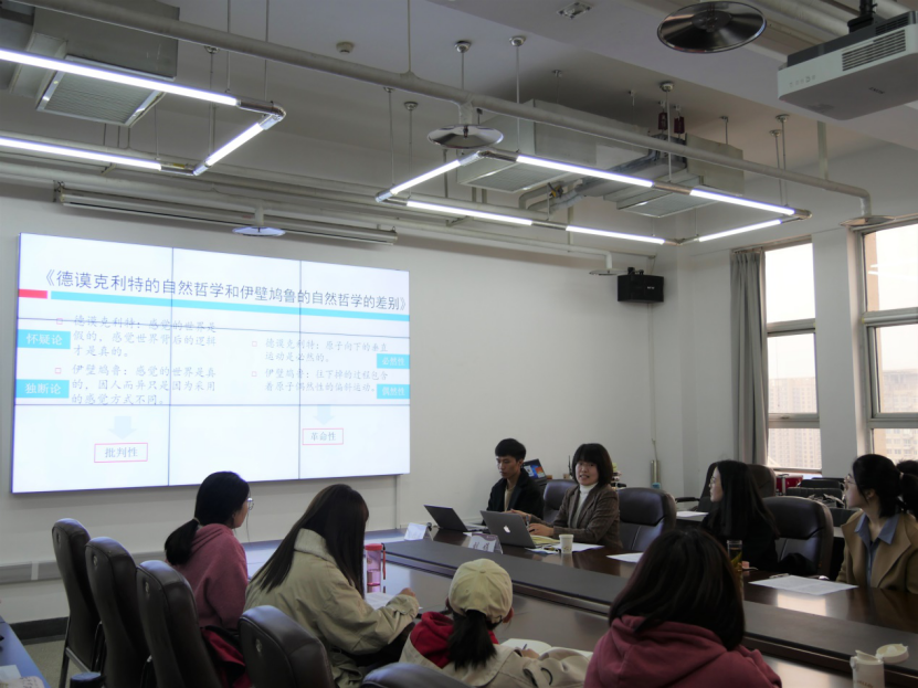 读书会以“真学、真懂、真信、真用、真教”为宗旨,以阅读马克思主义经典原著为方向,采取句读研讨、师生互动、专家讲解等丰富形式,坚持打造公海官方网710jcjc学术共同体。以教师推荐读本、学生自荐领读、师生共同研读的形式,本学期经典读书会共策划开展八期经典阅读活动,书目涉及哲学、文学、历史学、社会学等多个领域。本期读书会围绕马克思的博士论文《德谟克利特的自然哲学和伊壁鸠鲁的自然哲学的差别》进行阅读讨论,共分为“学生领读、教师解读、交流提问”三个环节。