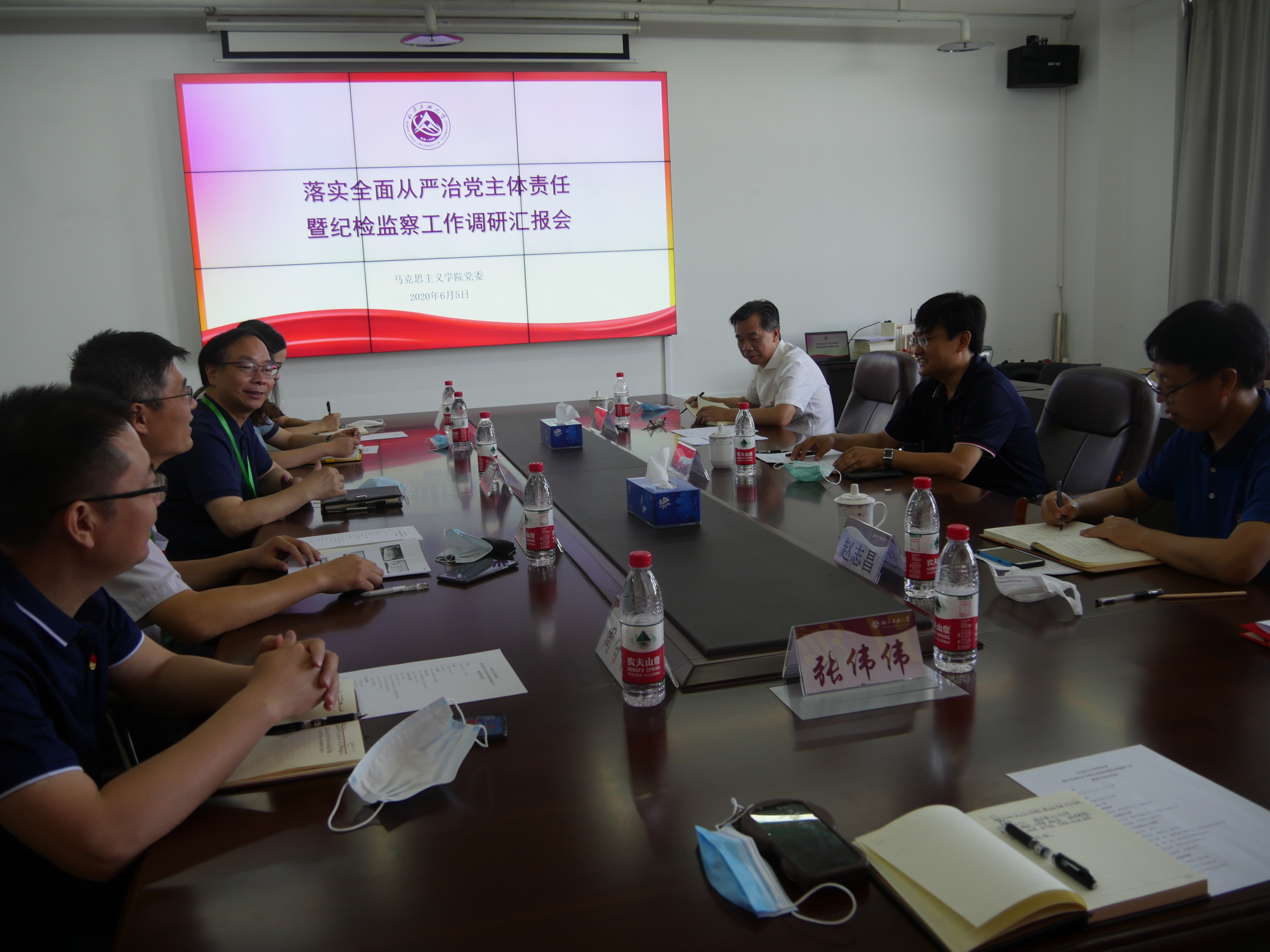 6月5日上午9点,以校纪委书记马春成为组长的校纪委工作组一行3人,就我院履行全面从严治党主体责任暨纪检监察工作情况进行调研。院党委副书记张茂林主持汇报会。院长张加才,党委委员周守高、刘以沛,教师代表温泉出席汇报会。