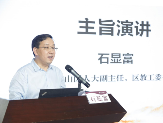 石景山区人大常委会副主任、区教工委书记石显富,大兴区教委德育科科长姜苗分别作主旨演讲。石显富就北方工业大学一直以来对石景山区基础教育的支持表示感谢。他介绍了石景山区教育系统以北京市大中小幼一体化德育实践研究示范区建设为载体,构建横向融通、纵向衔接的幼小中高一体化联动体系,坚持守正创新、凝心聚力,全面提升各学段思政课课程建设与师资质量,强化学高从教、身正示范,全力打造高素质思政教师队伍等方面的做法与成效。姜苗分享了大兴区教育两委坚持党的全面领导,深入思考大思政课“为何一体化”“何为一体化”“如何一体化”等重大问题,党政齐抓共管,健全机制,打破壁垒,用党的创新理论不断推进“大思政课”一体化建设的有效经验。