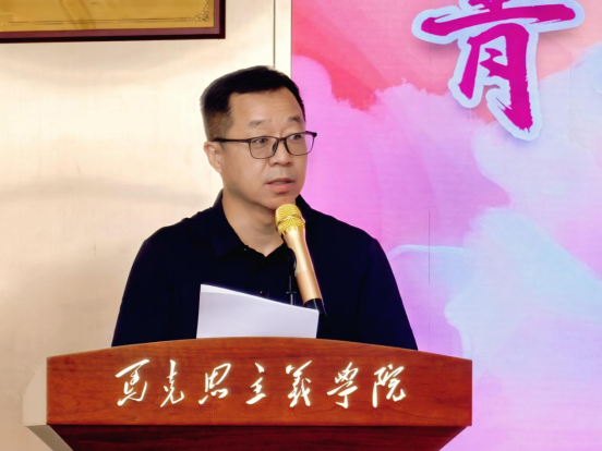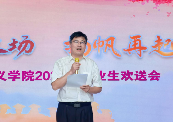 学院党委副书记、院长张茂林致辞。他深情回顾了与毕业生共同走过的三年时光,从青涩初见到今日远航,见证了同学们的成长与蜕变。他借用马克思在青年时期的三句经典语录鼓励毕业生,既要脚踏实地实现个人价值,也要不断提升专业素养,肩负起新时代青年的历史使命,在社会实践中成长为有用的人。
