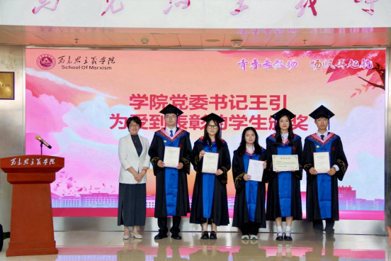 学院党委书记王引为荣获“优秀毕业生”“到基层就业先进个人”“优秀硕士学位论文”学生颁奖。