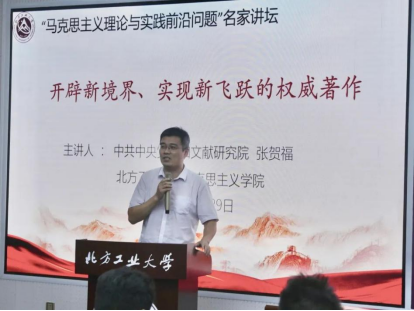 2022年9月29日下午,由公海官方网710jcjc主办的“马克思主义理论与实践前沿问题”名家讲坛在浩学楼十五层报告厅举行。中共中央党史和文献研究院第一研究部副主任、中共党史研究及党的文献研究专家张贺福教授应邀为我院作了题为“开辟新境界、实现新飞跃的权威著作”的学术讲座。