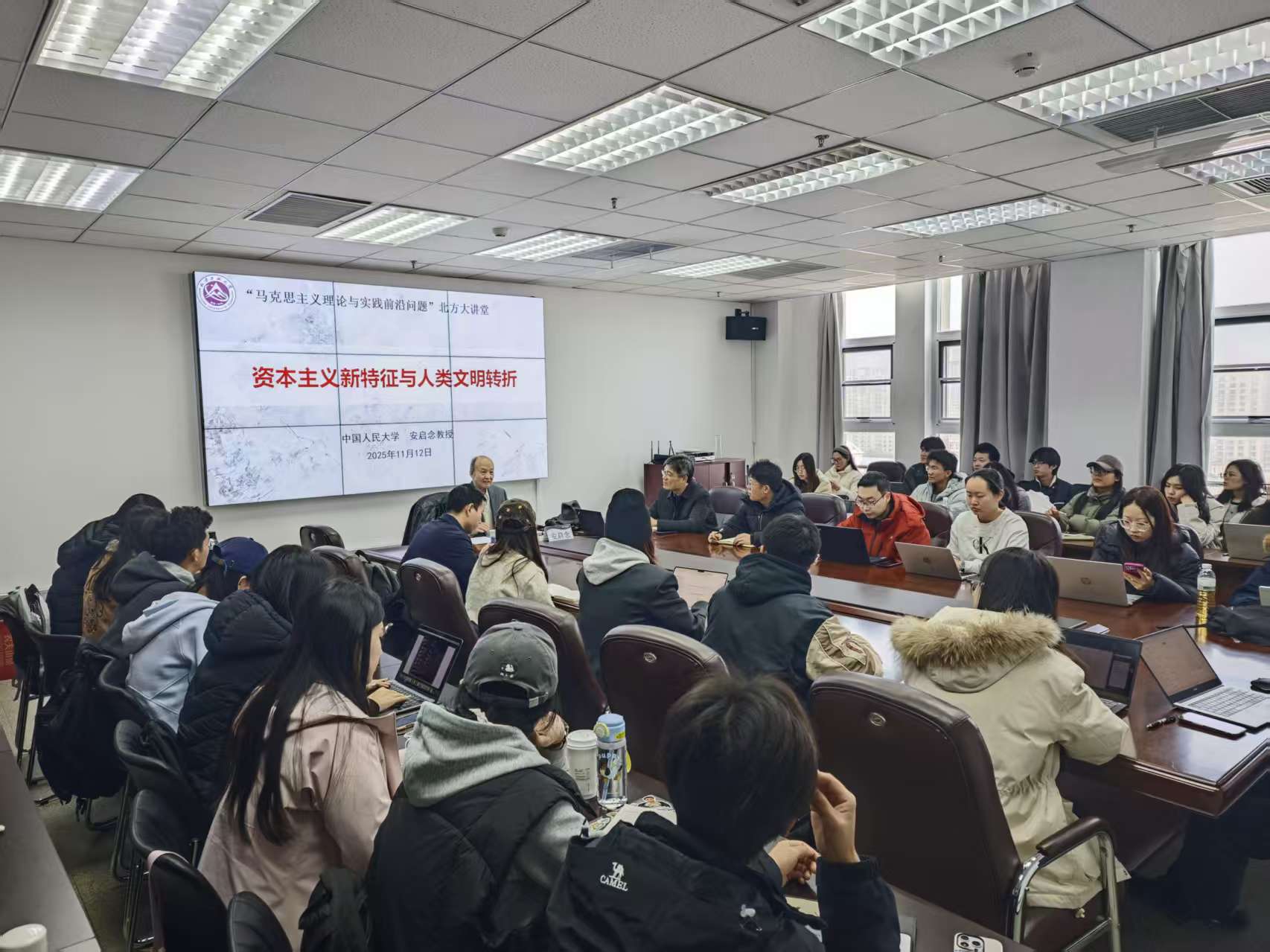 安启念教授以自身教学实践为切入点,从资本主义基本矛盾出发,系统梳理其历史演进脉络,结合当代科技革命与全球格局变迁,深入分析了资本主义的新特征与内在危机。安教授认为,人工智能和科学技术的迅猛发展,为实现共产主义理想社会提供了新的物质基础和技术支撑,也促使人类重新审视文明发展的历史方位与未来路径。在此背景下,中国积极践行人类命运共同体理念,既展现了大国担当,也为世界文明的可持续发展贡献了中国智慧和中国方案。