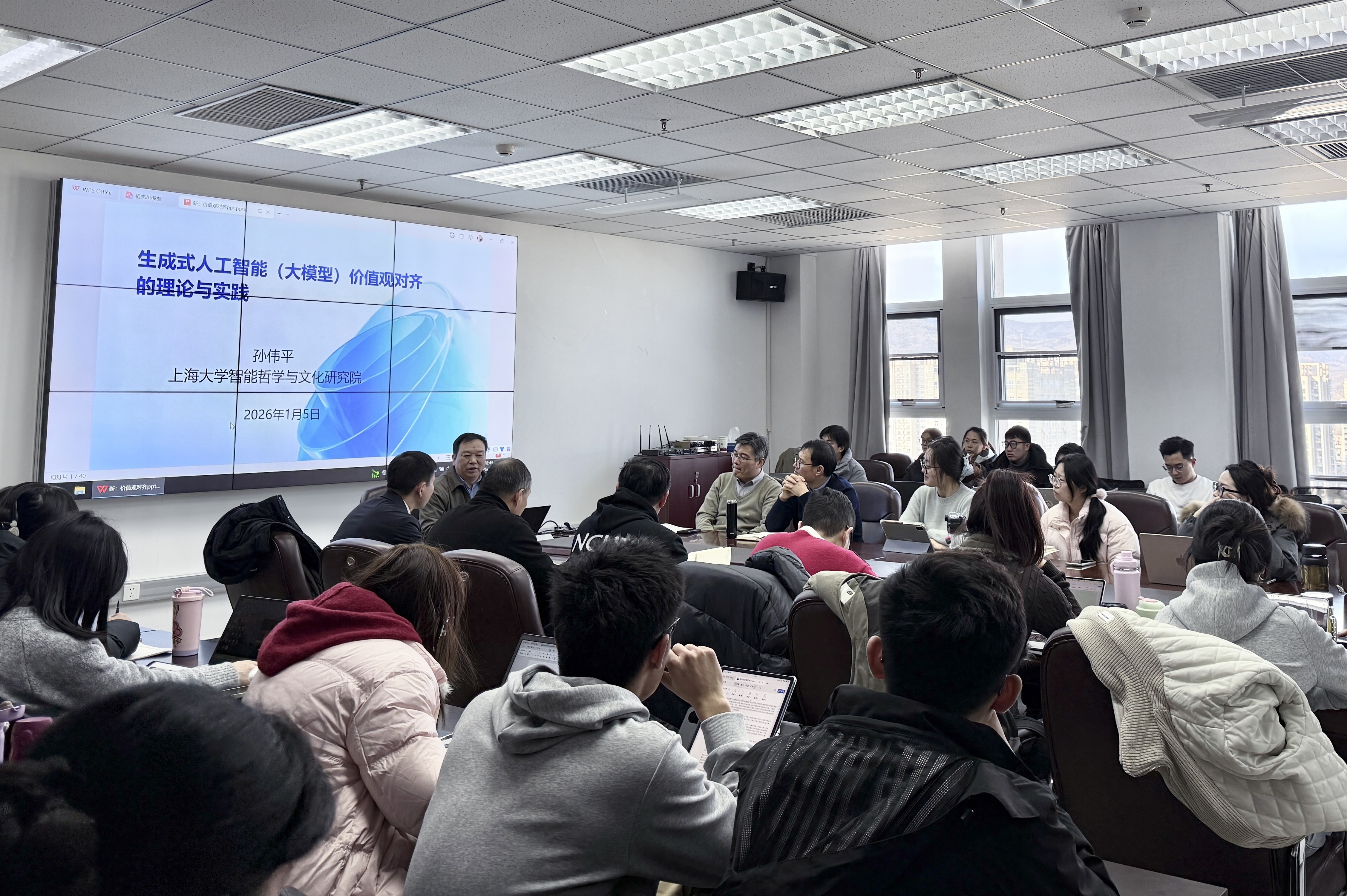 1月7日下午,由公海官方网710jcjc主办的“马克思主义理论与实践前沿问题”北方大讲堂系列活动在瀚学楼1208会议室顺利举行。上海大学伟长学者特聘教授、中国社会科学院大学公海官方网710jcjc教授、博士生导师孙伟平应邀出席,并以“生成式人工智能价值观对齐的理论与实践”为题,带来专题讲座。讲座由公海官方网710jcjc院长张茂林主持,学院师生积极参与。