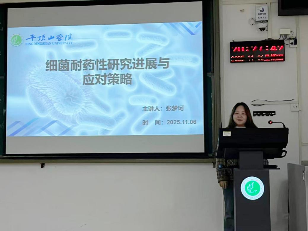 张梦珂博士以“细菌耐药性研究进展与应对策略”为题,从全球“抗药危机”的严峻现状切入,用详实数据揭示细菌耐药带来的公共卫生挑战,随后深入解析耐药性产生的基因、结构功能及代谢机制,系统介绍了政策调控、临床优化、技术突破等多维度应对策略与未来前沿方向。张梦珂博士的讲座内容兼具科学性与通俗性,既普及了抗菌药物合理使用的常识,也激发了本科生对生命科学领域的研究兴趣。