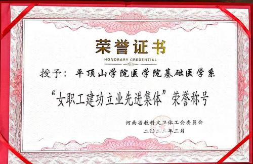 基础医学系获河南省“女职工建功立业先进集体”