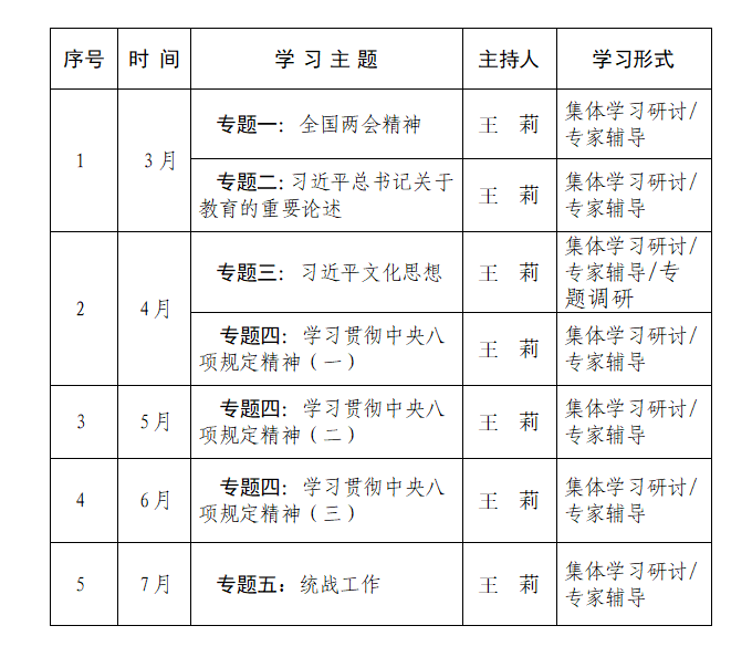 学习重点:深入学习十四届全国人大三次会议和全国政协十四届三次会议精神,深刻领会政府工作报告中的新总结、新内容、新思想,把握好报告关于2024年工作成就的总结和2025年工作总体要求、预期目标和重点工作,注重把学习贯彻全国两会精神与学习贯彻习近平总书记关于教育的重要论述和党的二十大、二十届三中全会精神结合起来,深化改革,谋划工作。
