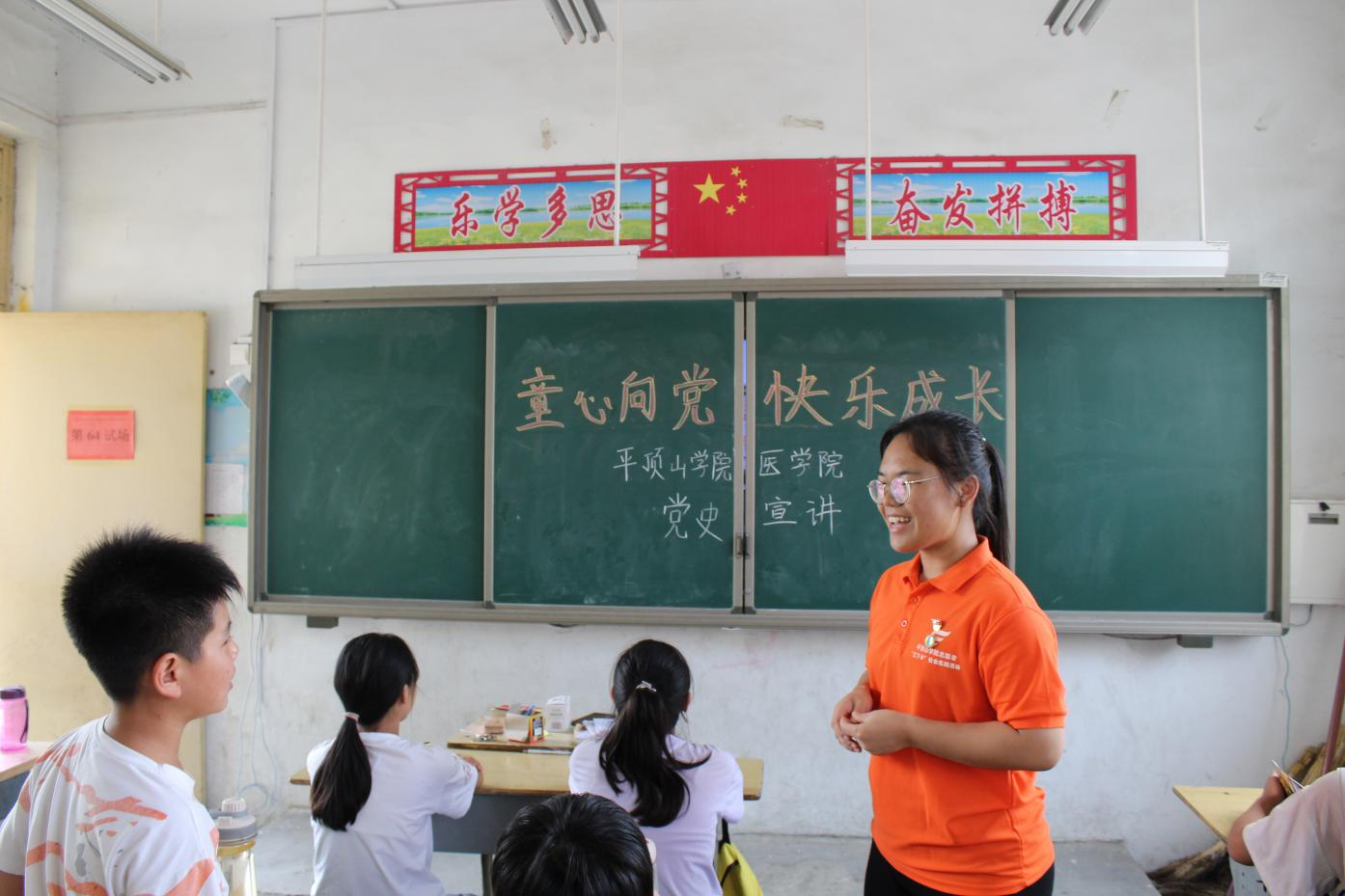 为讴歌党的光辉历史,培养学生爱党、爱国、爱家乡的情怀,平顶山学院医学院“三下乡”志愿服务团队在叶县夏李乡葛庄小学开展“童心向党,快乐成长”为主题党史的教育活动,组织当地小学生学党史、颂党恩,领会“听党话、跟党走”的精神。