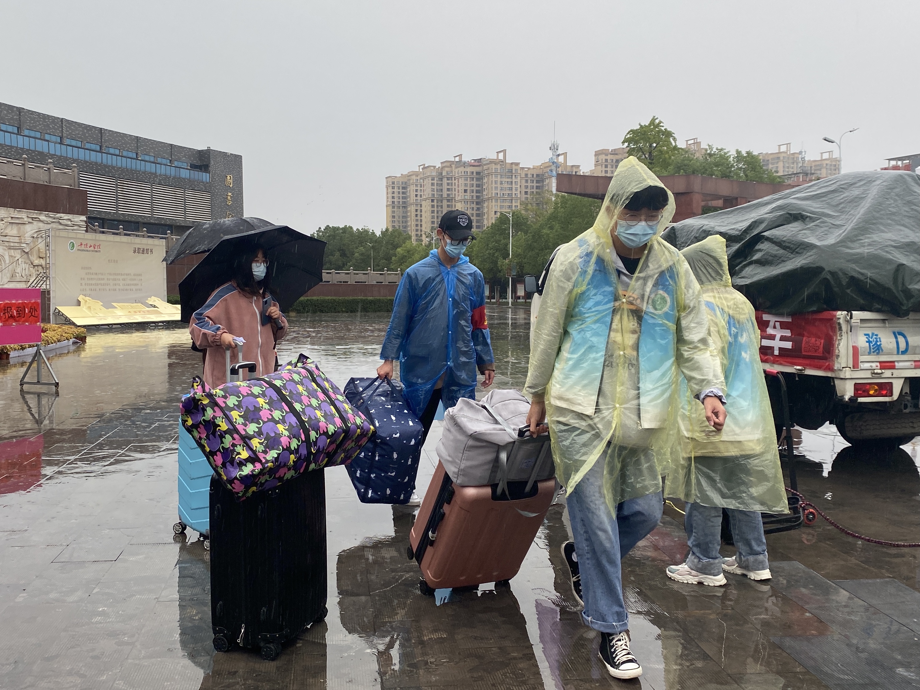 10月14-15日,医学院“迎新季”拉开帷幕,全院上下精心准备、周密安排,800余名新生同学在医学院有序报到。每天上午7点,迎新志愿者们全部在大门口、宿舍楼等接待点就位,恰逢雨天,志愿者们身披雨衣,热情不减,穿梭在校园里,搬运行李、热情引导新生完成报到流程。