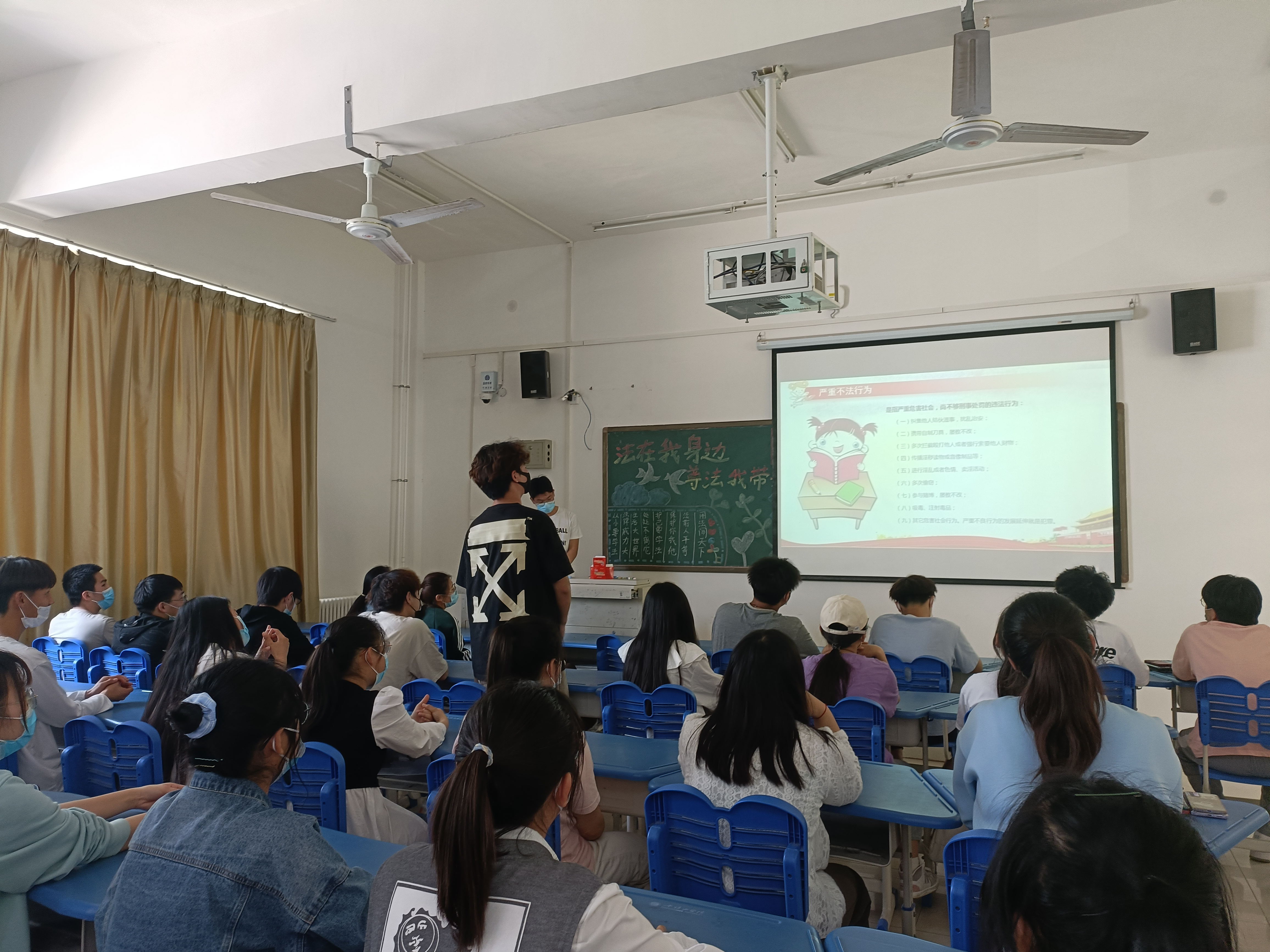 此次活动由主持人带领同学们学习《中华人民共和国民法典》、《宪法》等法律法规,通过播放普法宣传的相关视频,加强同学们对法律法规的了解。随后各团支部开展法律知识问答,紧扣活动主题、巩固学习成果,进一步加深同学们对我国法律法规的认识与理解。