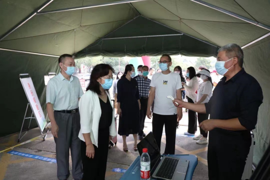 15日上午,校长苏晓红一行在医学院党政负责人陪同下来到迎新一线现场检查,详细了解迎新各项工作进展情况,查看新生入校流程,检查疫情防控措施执行情况,并与新生及家长们亲切交谈。