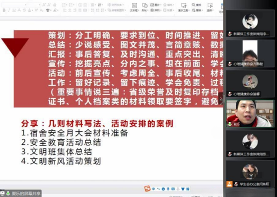 为推动学生干部明确责任担当、提升自身能力、制定工作计划,2月10日至12日医学院线上举办了为期三天的学生干部培训会。本次培训共分为三期,由我院团委书记夏乐、辅导员潘笑杏担任主讲,医学院全体学生干部共同参与。