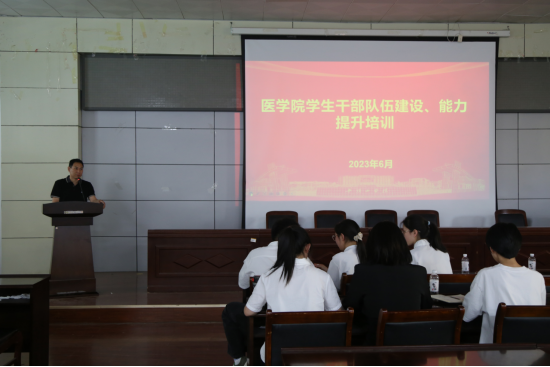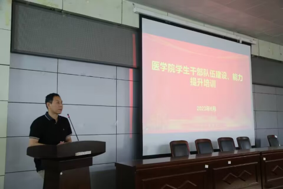 活动中,夏乐老师介绍了医学院学生干部队伍建设的基本情况,从学生干部的理想信念和追求、应该具备的核心管理能力、新时代青年学生如何做好学生管理服务工作三个方面,并结合自身工作经验和感悟对学生干部的成长和发展提出了意见和建议。他表达了对学生干部的殷切希望,希望同学们传好接力棒、做好排头兵,发扬平院精神,把医学院学生工作做的有声有色、更加出彩。