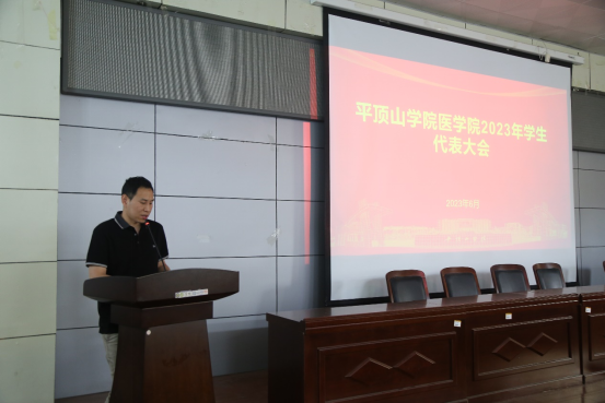 6月8日中午12点,医学院第十二届学生代表大会在四楼会议室顺利举办,团委书记夏乐和医学院学生代表参加了此次会议。