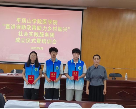 为贯彻落实党的二十大精神,推动“时代新人铸魂工程”,结合河南省资助中心和学校工作安排,6月29日下午,医学院举办2023年暑期“宣讲资助政策,助力乡村振兴”社会实践服务团成立仪式暨首场培训会,党委副书记冯建、指导老师代表和全体社会实践人员参加了此次会议。