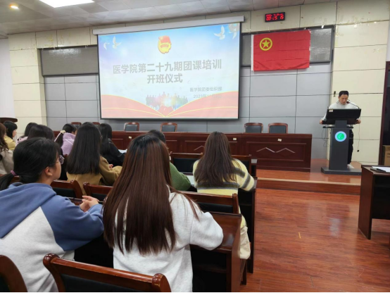 为全面推进医学院共青团基层组织建设,提升团员和团干部的理论素养和实践能力,医学院于11月9日在教学楼四楼会议室召开了以“凝聚青春伟力,勇担强国重任”为主题的第二十九期团课培训开班仪式,医学院团委书记夏乐与292名团员代表共同出席。