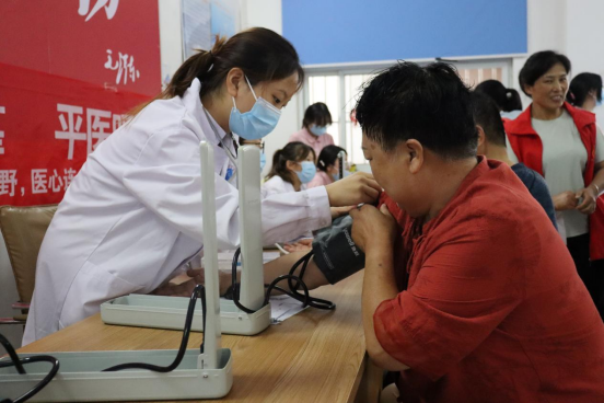 志愿者为当地居民进行血压测量(拍摄/彭晔)