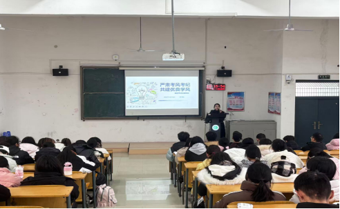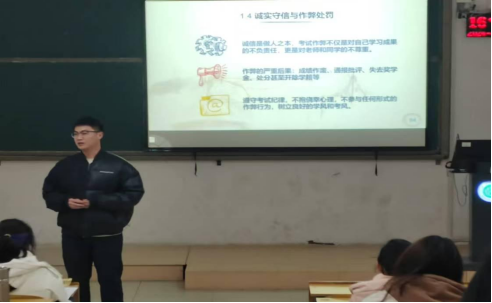 辅导员老师在班会上着重强调了诚信考试的重要性以及考试作弊的严重后果,提醒同学们不要抱有任何的侥幸心理,自觉抵制作弊行为,时刻保持对考试纪律的敬畏之心,做一名诚信合格优秀文明的大学生。