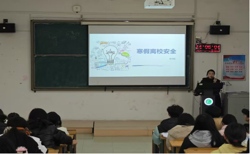 在期末考试动员部分,辅导员老师着重强调了《平顶山学院考试管理相关规定摘要》关于违反考试纪律的后果,要保持积极向上的心态,积极复习、认真备考,诚信考试。在寒假安全教育主题部分,辅导员老师围绕交通安全、消防安全、出行安全、网络诈骗等方面向同学们讲解了假期安全的重要性,尤其强调安全无小事,要时刻保持清新的头脑,做到自我保护,提升安全防范的能力。
