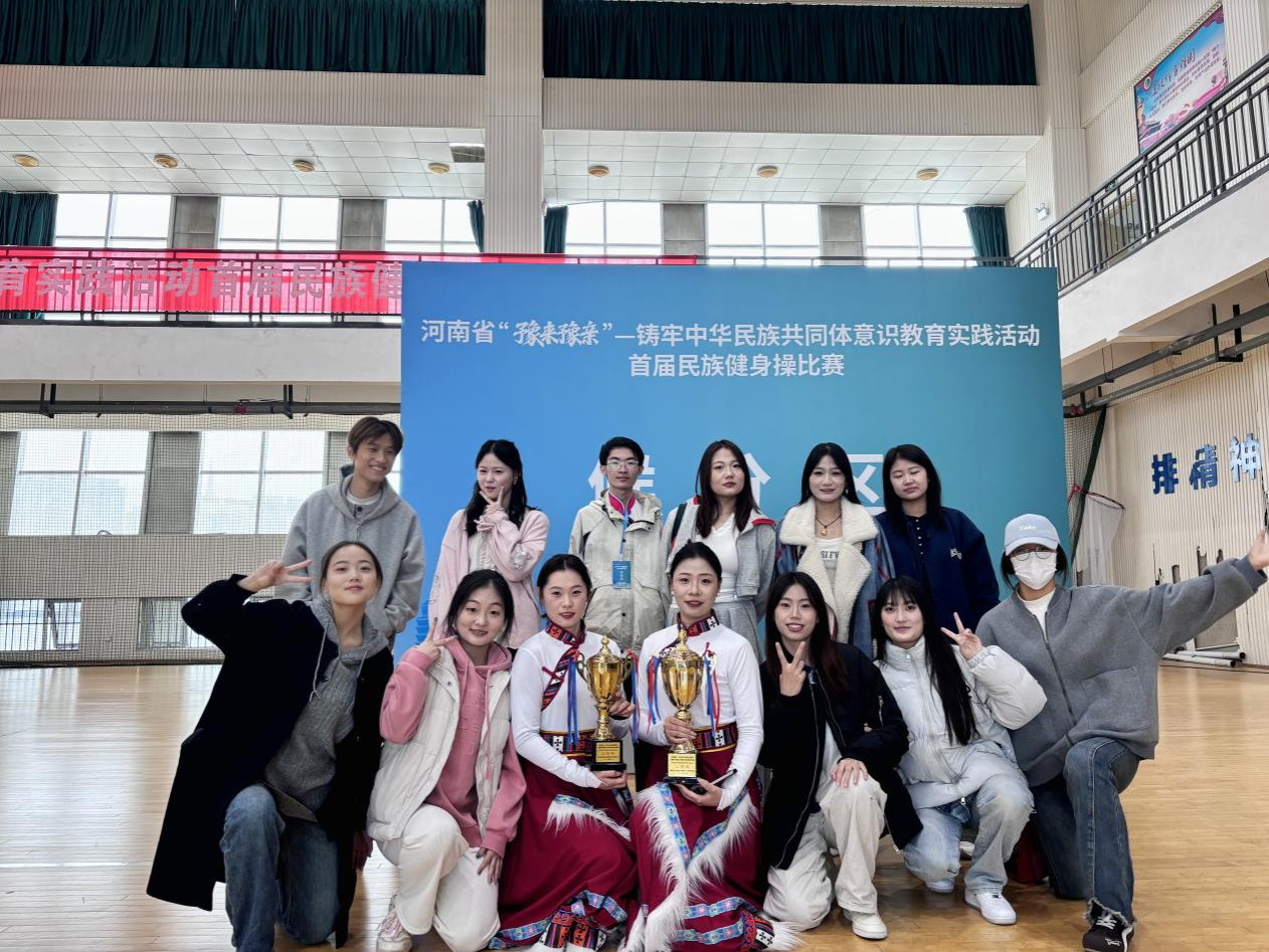 我校健身操代表队共有11名队员,其中有6名学生来自医学院。作为河南省“铸牢中华民族共同体意识”主题下的首届民族健身操赛事,本次活动并无先例可循,我校团队从零起步,不断打磨完善作品。医学院同学们怀着对舞蹈的热爱和坚持不懈的精神,积极投入日常训练,并与其他学院成员配合默契,动作整齐流畅。他们凭借作品《锦绣大中华》,赢得了现场评委和观众的好评,最终在民族健身操规定套路赛道荣获二等奖。