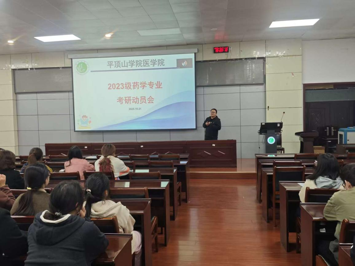 为帮助学生明晰职业规划、了解升学就业前景、激发考研热情。10月21日,药学系特邀行业导师陕西丽彩药物研究集团贾鸿宾博士为2023级药学专业学生举办“行业导师面对面、就业升学心连心”动员会,会议由药学系主任范帅主持,药学专业110余名学生参加活动。