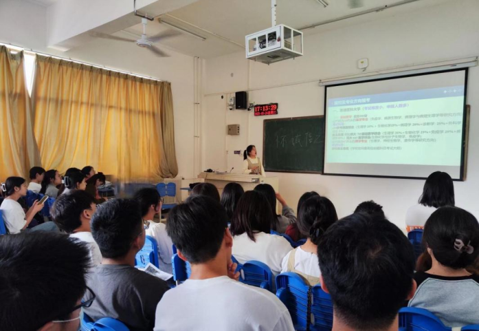 刘强主任立足于学生们的职业发展的需要,着眼于学生未来的成长,指出考研深造是一个十分有利于个人成长的发展方向,刘强主任以新乡医学院研究生招生简章为例,概述了志愿报考的注意事项,并就如何准确及时填报考研信息进行了总结和分析;同时结合自身考研经历,为学生传授考研经验,强调同学们要结合自身学习状况,早做规划,早做准备,从容备考。