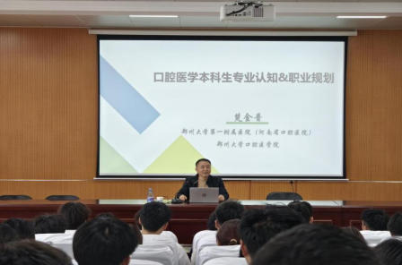 4月10日下午,医学院邀请郑州大学教授楚金普为师生作了一场题为《口腔医学本科生专业认知&职业规划》的专题报告。医学院全体教师和2024级口腔医学本科专业学生参加报告会,报告会由医学院院长郑新华主持。
