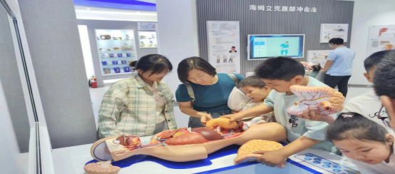 通过志愿者对不同展区的讲解,老师及小朋友们详细了解了胚胎的发育、人体生长过程的不同阶段,解剖学标本,常见的临床技术应用等不同领域的知识。其中,人体VR虚拟体验系统、骨关节感应互动系统、人体器官模型拼接、脑电波互动对抗等多种新奇的体验方式,进一步拓展了小朋友们的生命科学知识,激发了小朋友们敬畏生命,感恩生命的意识。