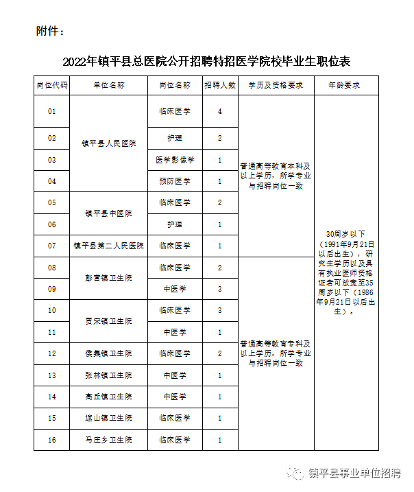 附件:镇平县2022年公开招聘特招医学院校毕业生职位表