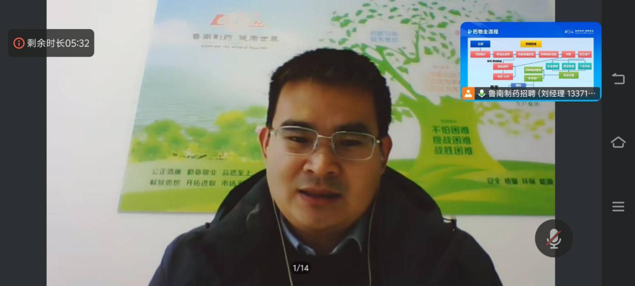 本次线上宣讲会不仅为我院学子搭建了高效的就业对接平台,也为鲁南制药集团引进优秀医药人才注入了新的活力。期待未来校企双方能进一步深化合作,共同推进人才培养与企业发展的互利共赢。